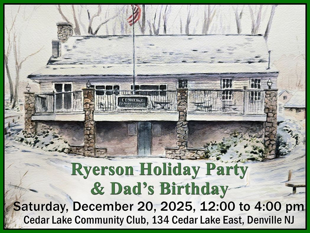 ** Last year's party had to be switched at the last minute to Boonton because we only had 20 people who said they'd be coming, then more than 60 people showed up. The building capacity was 46; tables and chairs had to be transported; and street parking was only two hours. This year, unfortunately, if we don't have enough "yes" responses well ahead of time, the party would have to be cancelled in order to avoid losing our Clubhouse rental deposit; plus people need time to make alternate holiday plans. So please RSVP soon!